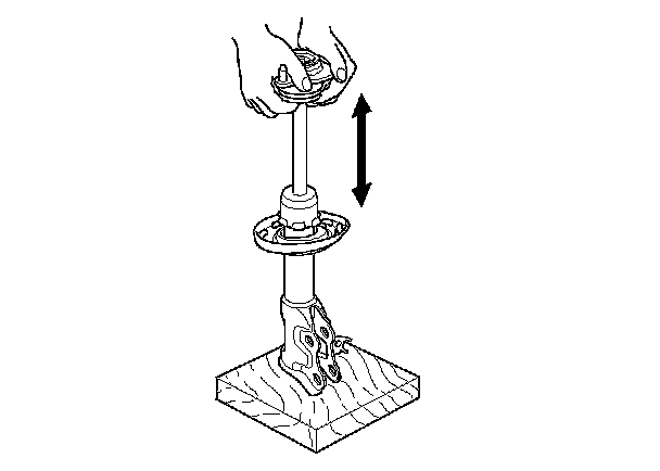 2. Compress the damper assembly by hand, and check for smooth operation through a full stroke, both compression and extension. The damper should extend smoothly and constantly when compression is released. If it does not, the gas is leaking and the damper should be replaced.
