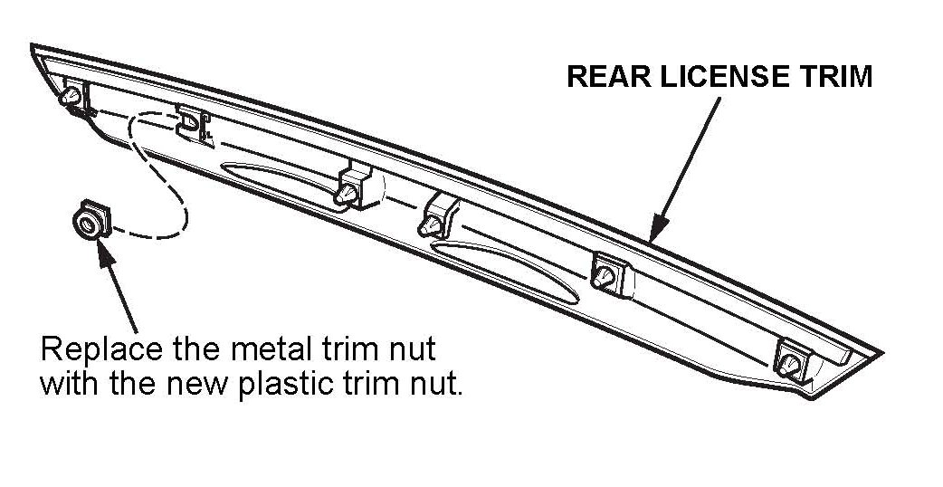 4. Replace the metal trim nut on the rear license trim with the new plastic trim nut.