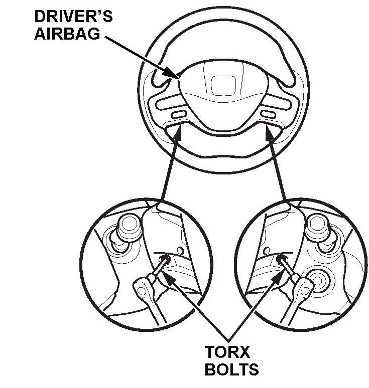 ^ Place the driver's airbag in the steering wheel, and secure it with the original TORX bolts.