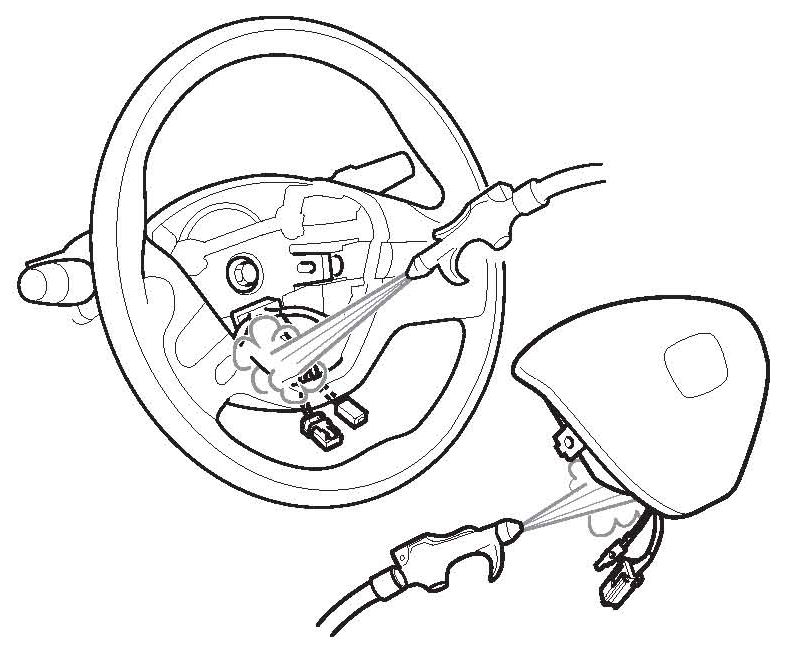 ^ Disconnect the horn switch IP connector, then remove the driver's airbag.