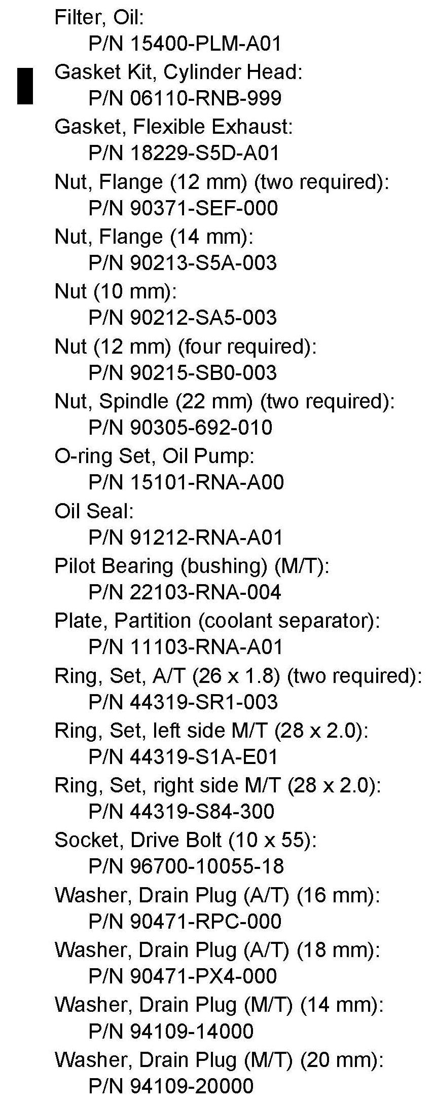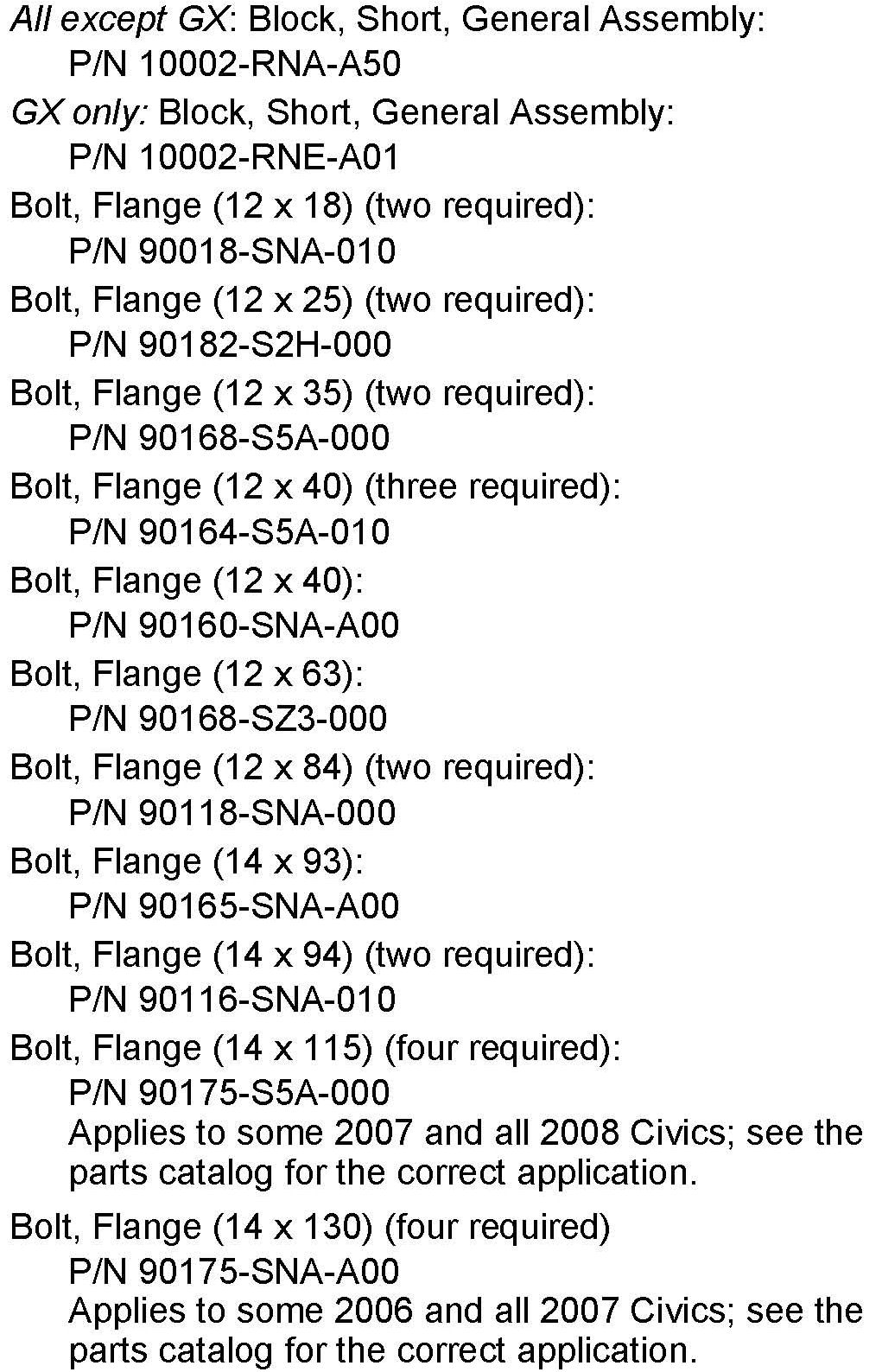 *Under PARTS INFORMATION, the cylinder head gasket kit part number was changed.*