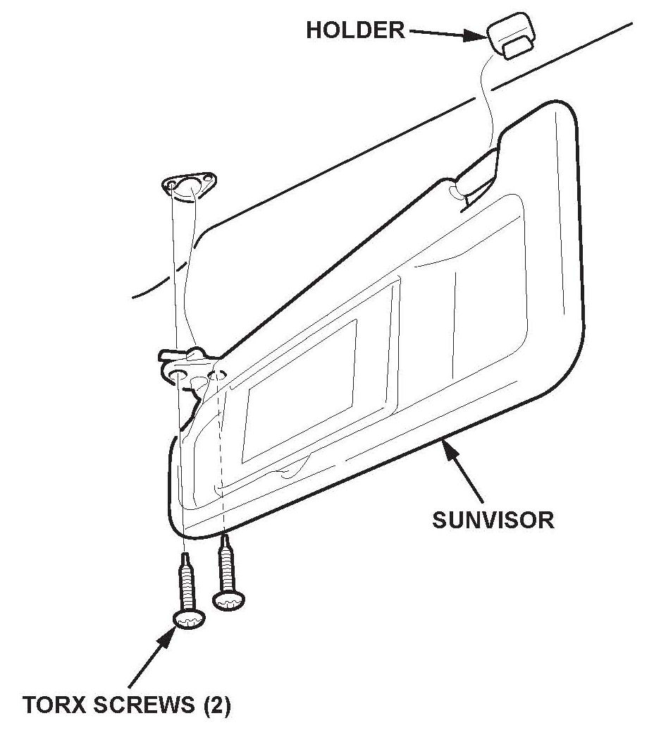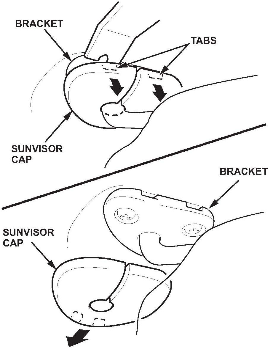 1. With the appropriate trim tool, release the tabs of the sunvisor cap from the bracket, then remove the sunvisor cap.
