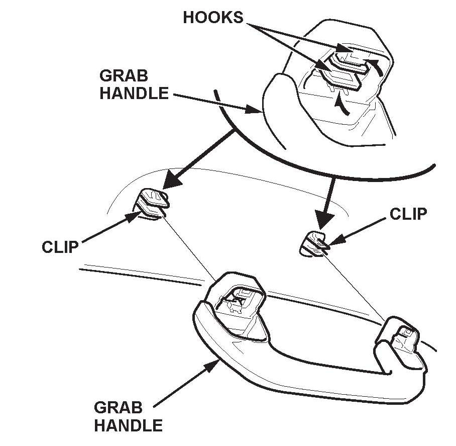 6. Pinch the clips to release the hooks, then remove the grab handle.