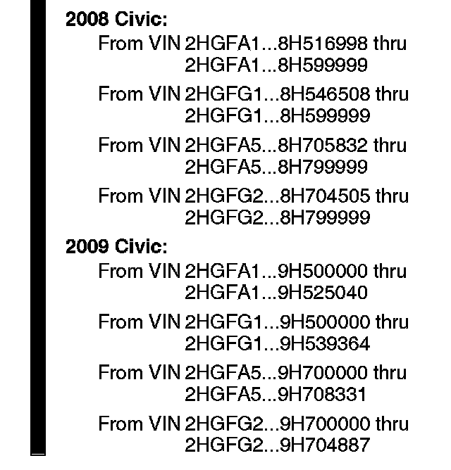 A VEHICLES AFFECTED section was added, which includes expanded VIN ranges for the 2008 Civic and the addition of certain 2009 Civics.*