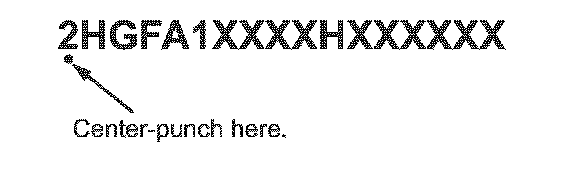 12. Center-punch a completion mark below the first character of the engine compartment VIN: