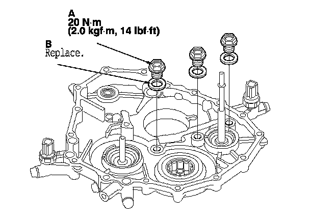 2. Install the air check valve(s) and a new sealing washer(s) (B).