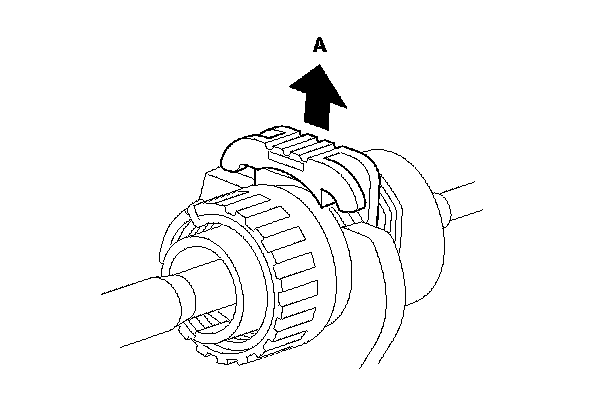6. Rotate the socket holder retainer (A) counterclockwise, push it against the socket holder bracket (B), then slide the socket holder to remove the shift cable (C) from the bracket.
