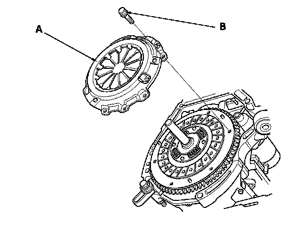 28. Torque the mounting bolts (A) in a crisscross pattern. Tighten the bolts in several steps to prevent warping the diaphragm spring.