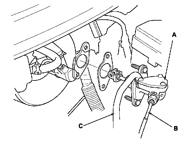 10. Remove the clutch master cylinder (A) with the clutch line (B) and the reservoir hose (C).