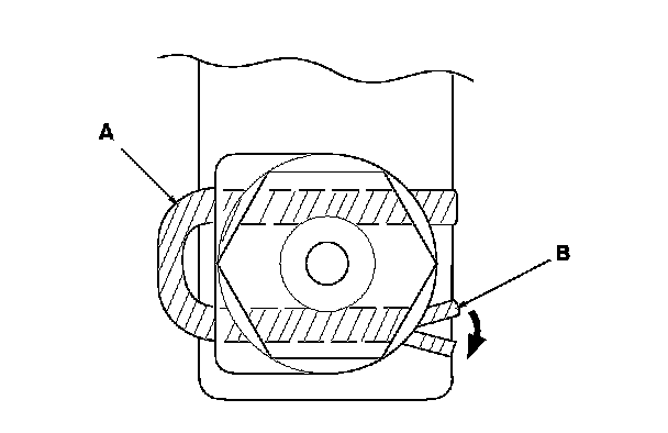 16. To prevent the retaining clip (A) from coming off, pry apart the tip (B) of the clip with a screwdriver.