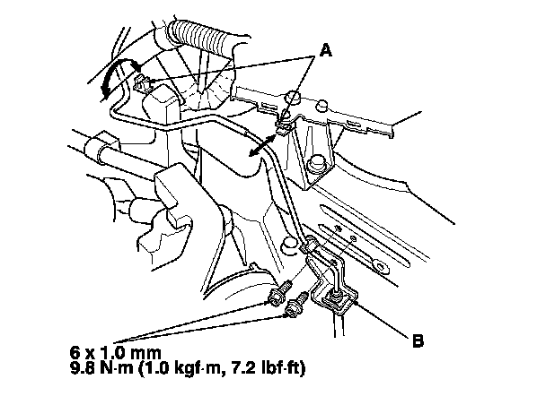 17. Install the clutch master cylinder (A) with a new clutch master cylinder seal (B).
