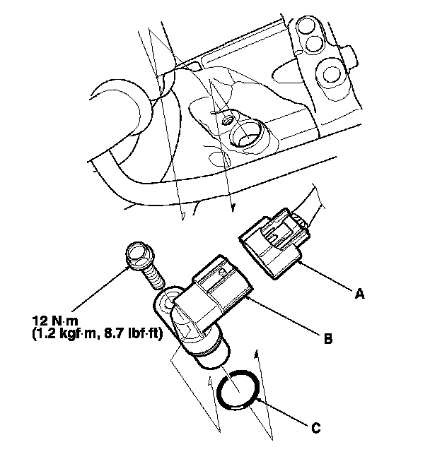 4. Install the parts in the reverse order of removal with a new O-ring (C).