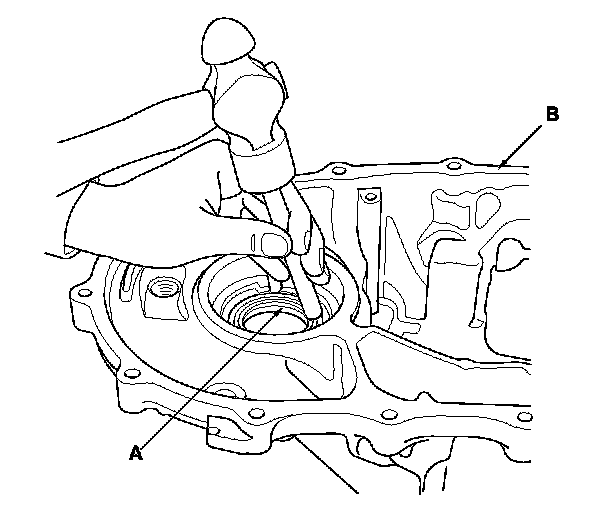 1. Remove the oil seal (A) from the transmission housing (B).