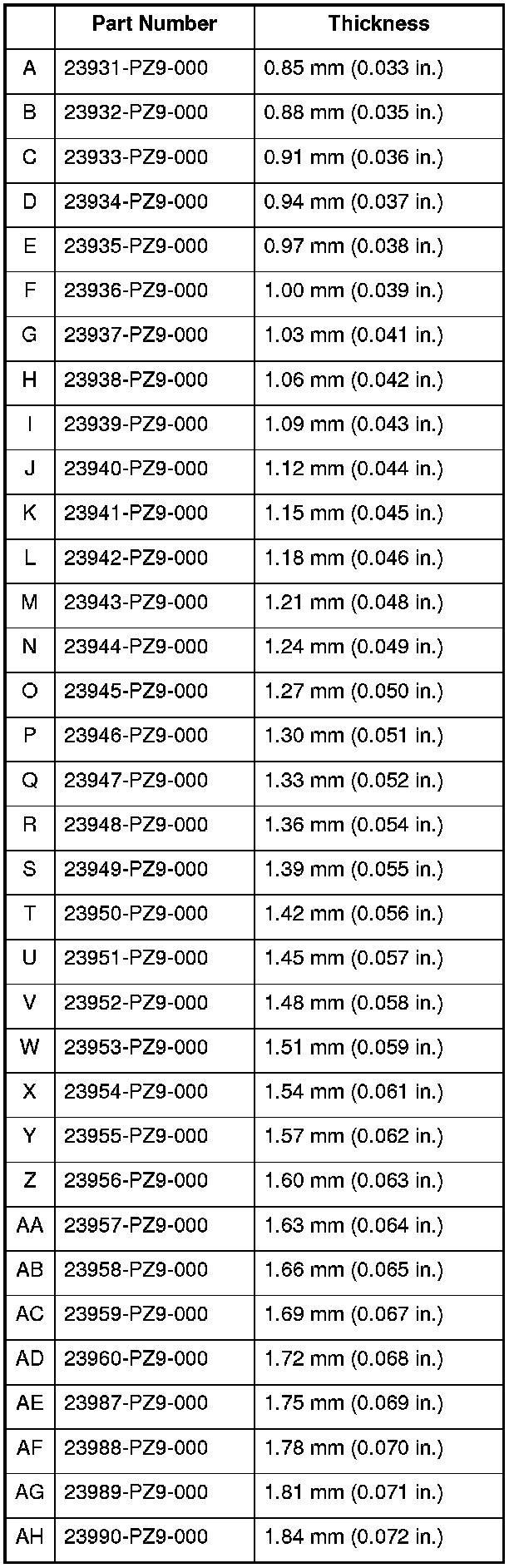Select the shim closest to the amount calculated, for example the 1.78 mm (0.071 in.) shim.