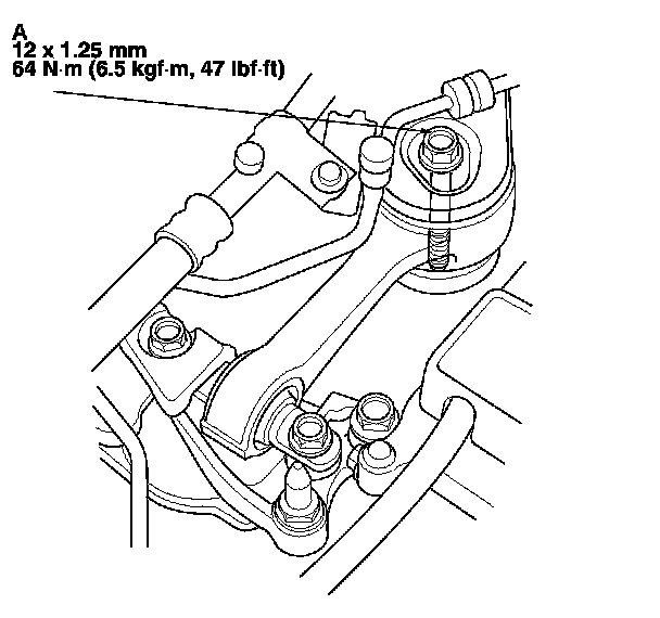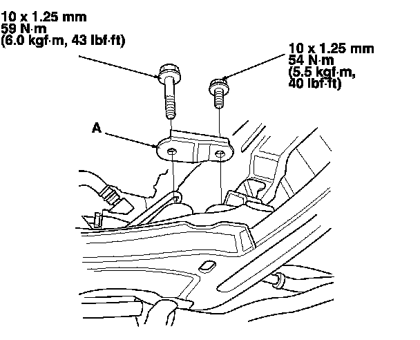 22. Loosen and retighten the lower torque rod mounting bolt (A).