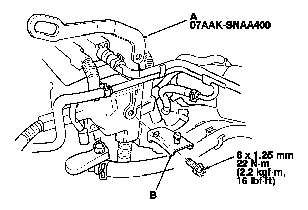 29. Install the air cleaner housing bracket (B) on the cylinder head.