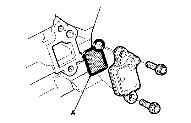 11. Remove the VTC strainer (A), and check it for clogging.