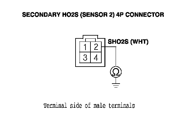 13. Check for continuity between secondary HO2S (Sensor 2) 4P connector terminal No. 2 and body ground.