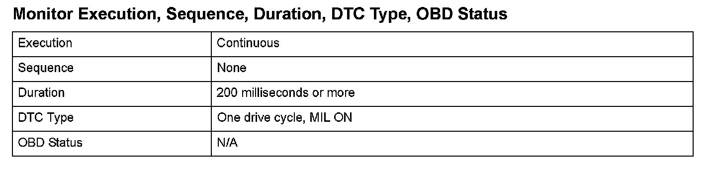 Monitor Execution, Sequence, Duration, DTC Type, OBD Status