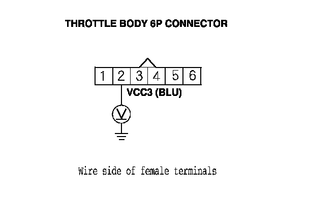 10. Measure the voltage between throttle body 6P connector terminal No. 2 and body ground.