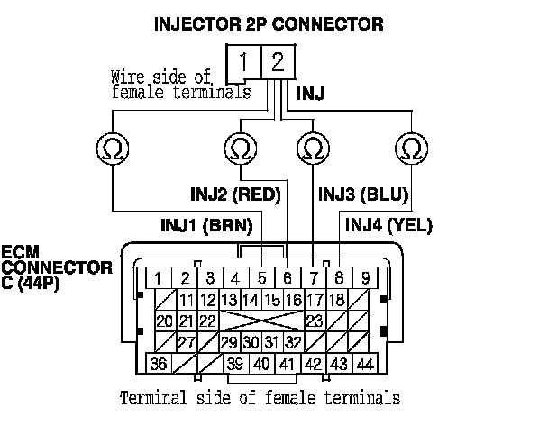 48. Disconnect the injector 2P connector from the problem cylinder.