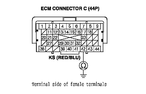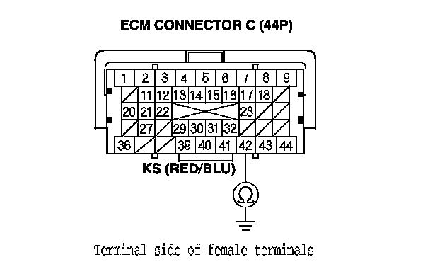 10. Check for continuity between ECM connector terminal C42 and body ground.