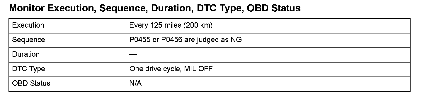 Monitor Execution, Sequence, Duration, DTC Type, OBD Status