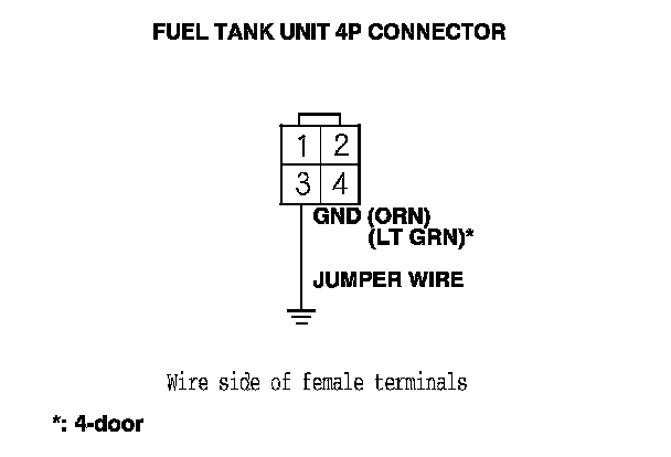 12. Connect fuel tank unit 4P connector terminal No. 1 to body ground with a jumper wire.