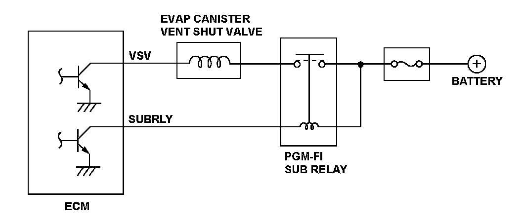 If the return signal is OFF when the engine control module (ECM) outputs the ON signal to the EVAP canister vent shut valve, the ECM detects a malfunction and a DTC is stored.