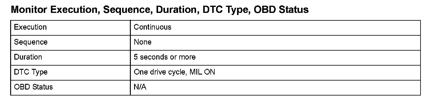 Monitor Execution, Sequence, Duration, DTC Type, OBD Status