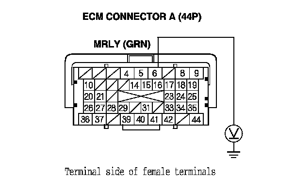 12. Check for continuity between ECM connector terminal A6 and body ground.