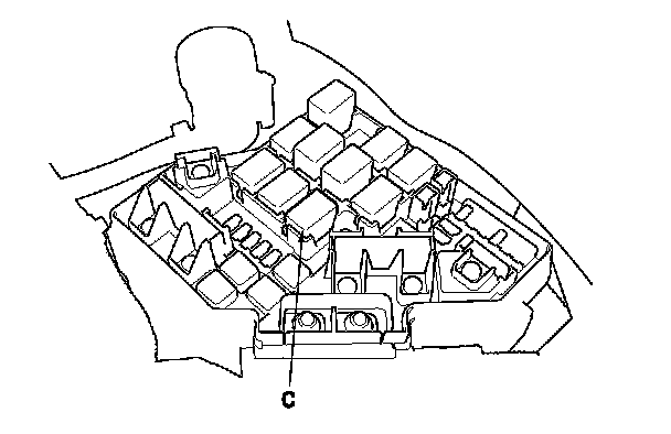 11. Remove PGM-FI main relay 1 (C) from the under-hood fuse/relay box.