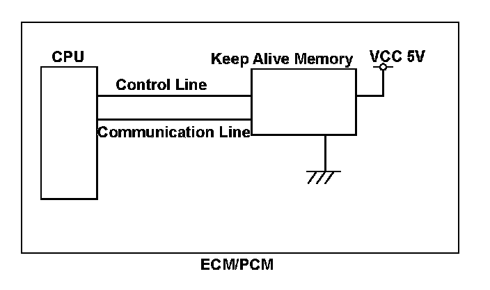 The engine control module (ECM)/powertrain control module (PCM) is equipped with a keep-alive memory. The data (control learn data, etc.) for powertrain control and information (vehicle identification number (VIN), etc.) related to the vehicle control is stored in the keep alive memory, so that it can be maintained even when power is not supplied to the ECM/PCM, such as when the battery is disconnected. When power is restored to the ECM/PCM, the CPU retrieves the stored information from the keep alive memory, but when the data retrieval process is not finished normally, a malfunction is detected and a DTC is stored. The CPU writes data to the keep alive memory from the CPU: Control related data is written when the ignition switch is turned to ON (II), and vehicle information when commanded from the HDS. If the data writing process is not completed normally, a malfunction is detected and a DTC is stored.
