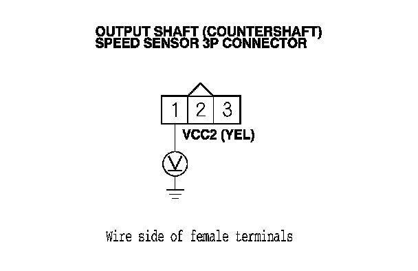 8. Measure the voltage between output shaft (countershaft) speed sensor 3P connector terminal No. 2 and body ground.