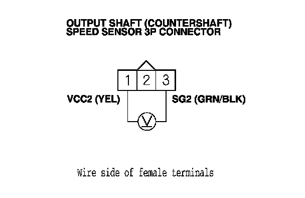 9. Measure the voltage between output shaft (countershaft) speed sensor 3P connector terminals No. 1 and No. 3.