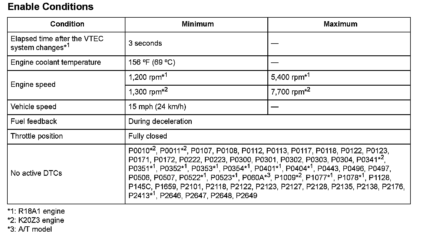 Monitor Execution, Sequence, Duration, DTC Type, OBD Status