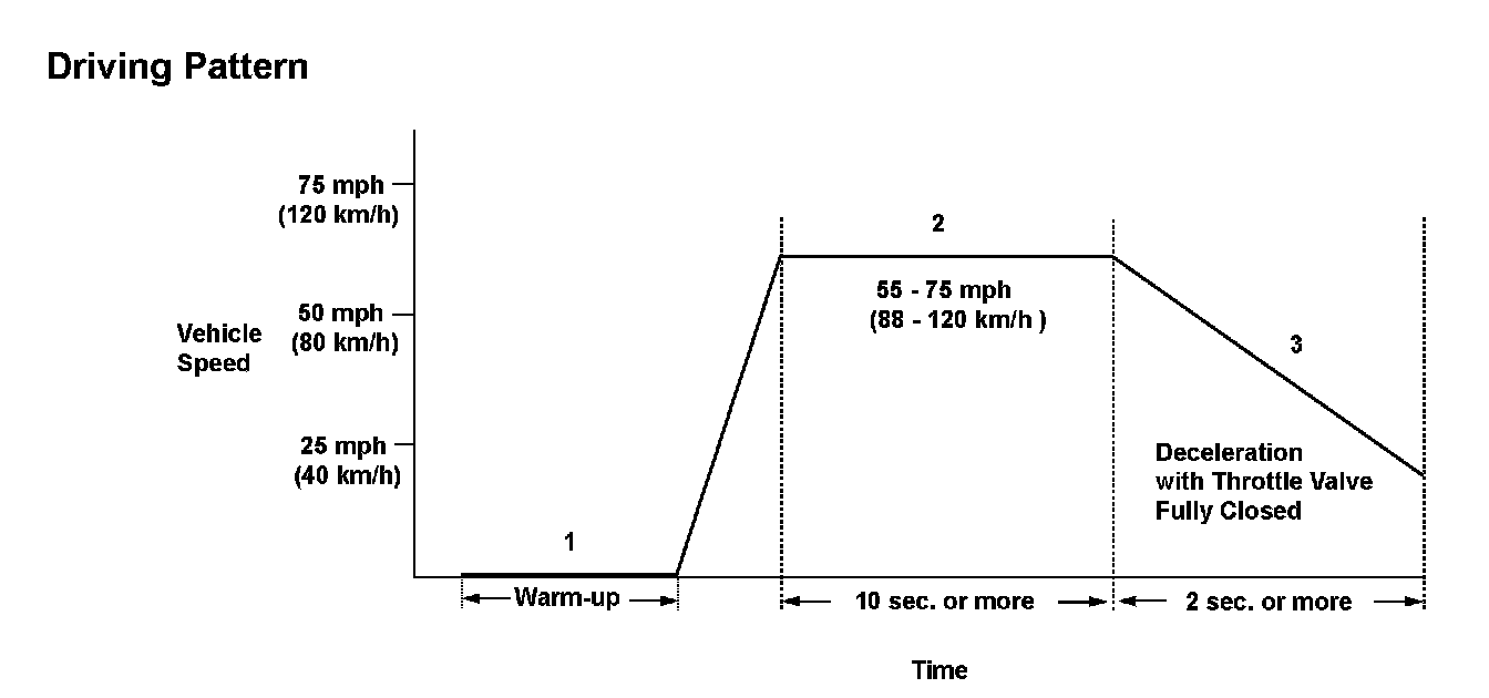 2. Drive the vehicle at a steady speed between 55 - 75 mph (88 - 120 km/h) for at least 10 seconds.