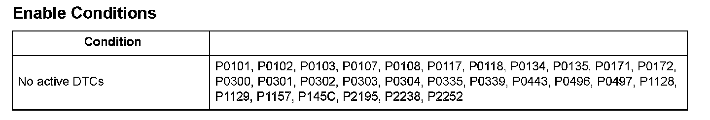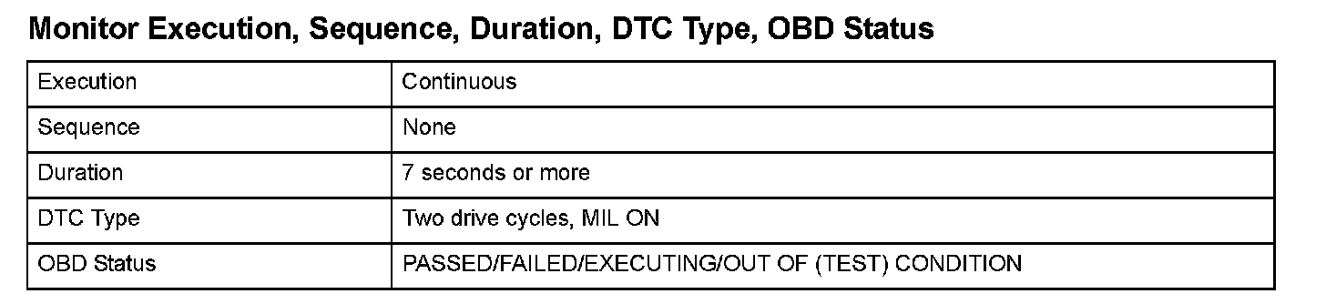 Monitor Execution, Sequence, Duration, DTC Type, OBD Status
