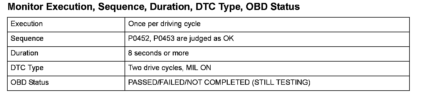 Monitor Execution, Sequence, Duration, DTC Type, OBD Status