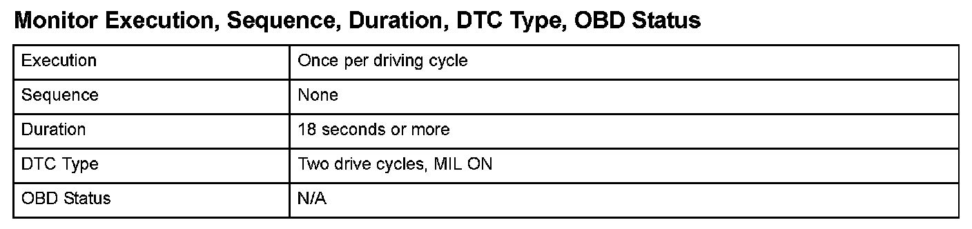 Monitor Execution, Sequence, Duration, DTC Type, OBD Status