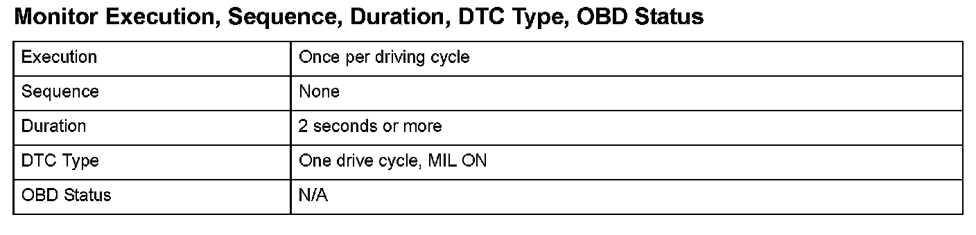 Monitor Execution, Sequence, Duration, DTC Type, OBD Status