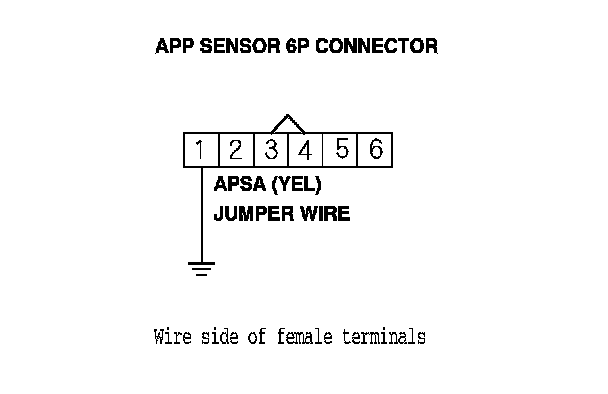 11. Connect APP sensor 6P connector terminal No. 1 to body ground with a jumper wire.