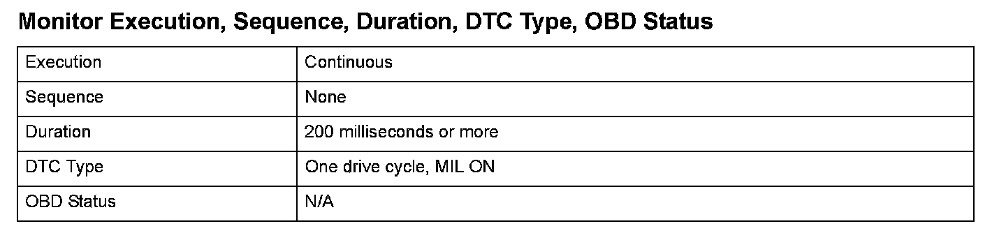 Monitor Execution, Sequence, Duration, DTC Type, OBD Status
