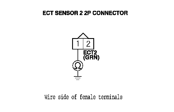 10. Check for continuity between ECT sensor 2 2P connector terminal No. 1 and body ground.