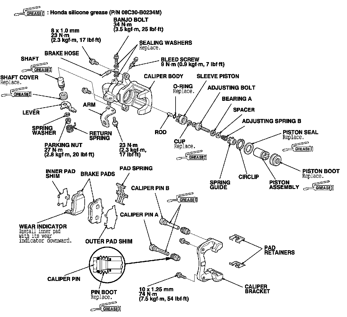 - Use recommended greases in the rear caliper set.