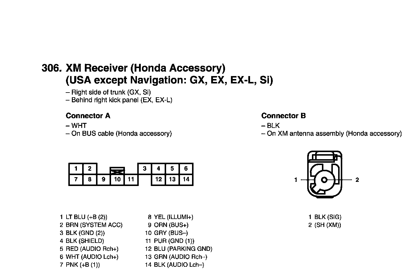 View 306 XM Receiver Connector View (Honda Accessory)