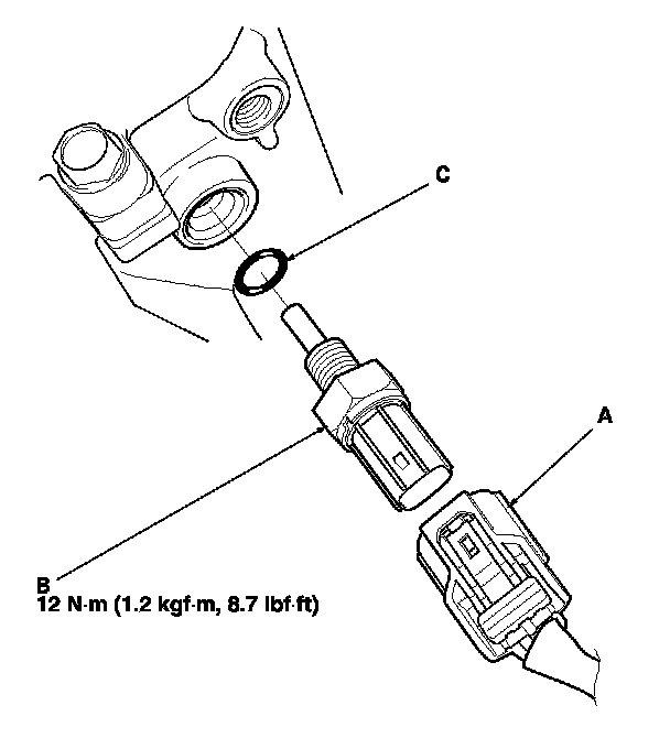 7. Install the parts in the reverse order of removal with a new O-ring (C), then refill the radiator with engine coolant. Service and Repair