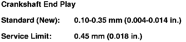 4. If the connecting rod end play is beyond the service limit, install a new connecting rod, and recheck. If it is still beyond the service limit; replace the crankshaft. Crankshaft and Piston Removal