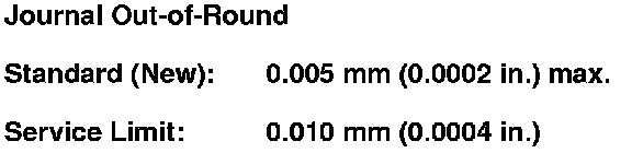4. Measure the out-of-round at the middle of each rod and main journal in two places. The difference between measurements on each journal must not be more than the service limit.