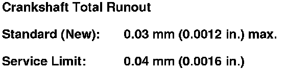 8. Measure the runout on all main journals. Rotate the crankshaft two complete revolutions. The difference between measurements on each journal must not be more than the service limit.